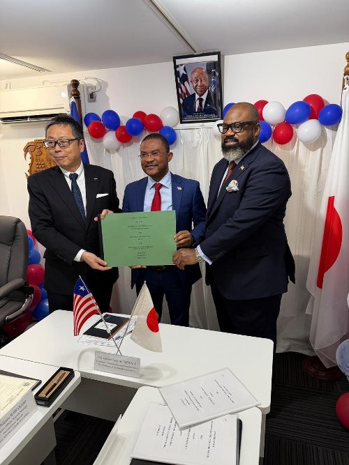 He also credited Liberia’s foreign minister, Sara Beysolow Nyanti, and the country’s ambassador to Japan, Edward Wade Appleton Jr., with helping to strengthen diplomatic ties that facilitated the agreement.